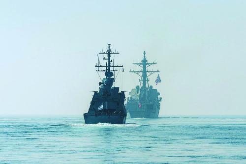1일, 홍해 해역에서 촬영한 미국과 이스라엘의 합동훈련 현장 모습이다.