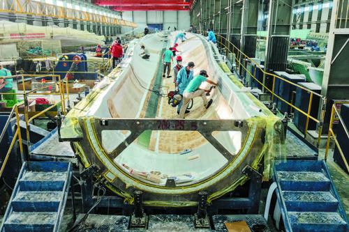 최근년간 감숙성 주천시에서는 풍력에너지자원을 리용해 풍력전기의 전반 산업사슬 구도를 형성했다. 현재 많은 글로벌 풍력기계장비제조 선두기업들이 이곳에 입주했는데 년간 생산량이 2000만킬로와트에 달하는 풍력장비 종합능력을 갖추었다. 사진은 20일 감숙성주천경제기술개발구에 있는 감숙구정풍력복합자재유한회사에서 풍력기 날개 도료작업에 한창인 작업일군들의 모습이다.
