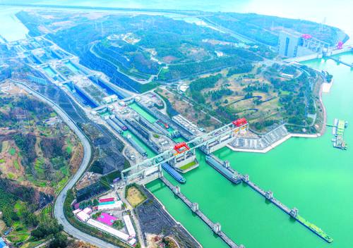 지난해 삼협수리중추는 도합 1만 4415차 운행한 가운데 년간 통과량이 1억 7300만톤에 달해 전년 동기 대비 8.66% 증가했다. 삼협수문(三峡船闸) 년간 통과량은 1억 7000만톤에 달했고 삼협승강기 려객운수량은 년간 63만 2000명에 달해 사상 최고치를 기록했다. 1월 1일 호북성 의창시 삼협 5급 수문을 순서 대로 지나는 선박을 드론으로 촬영했다.